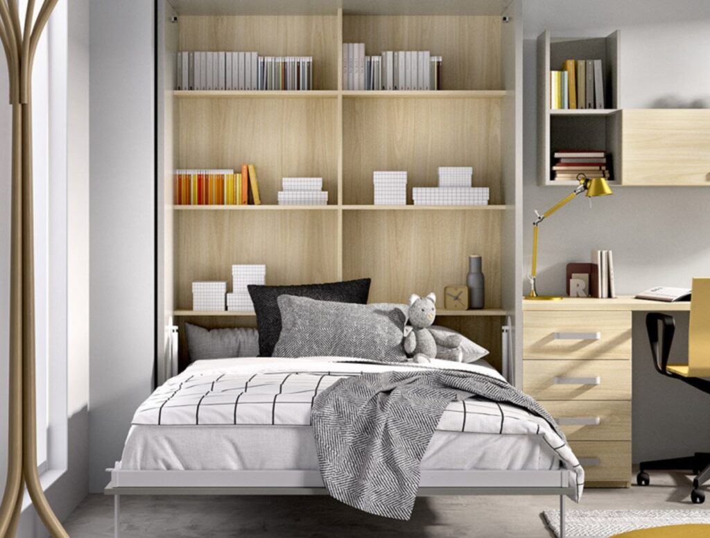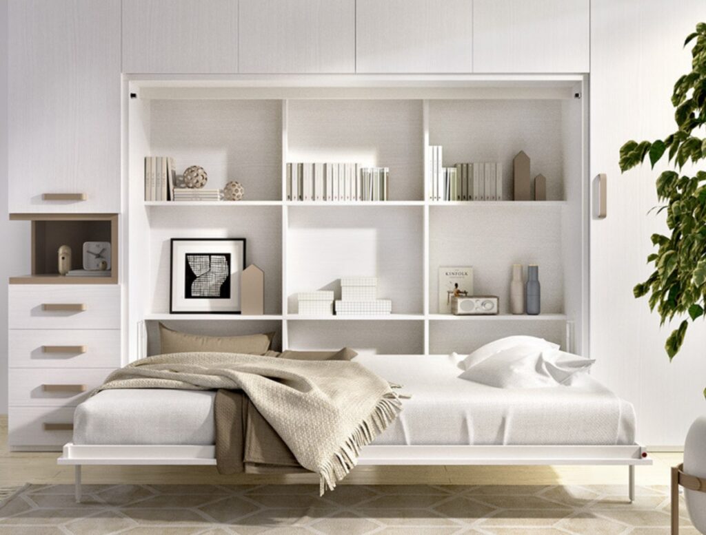 • Camas abatibles con estanterías para decorar y organizar