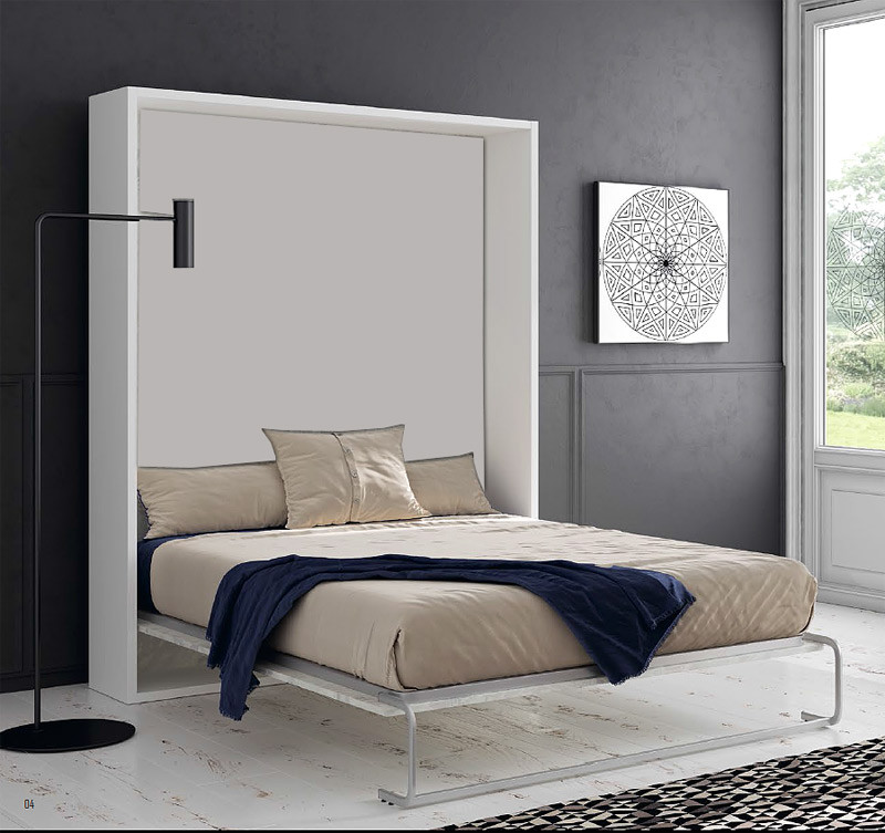 La cama se abre VERTICALMENTE, siendo una opción ideal para las habitaciones de reducido tamaño. El hueco interior permite el uso de UN COLCHÓN CON UNA ALTURA MÁXIMA DE 20 CM.