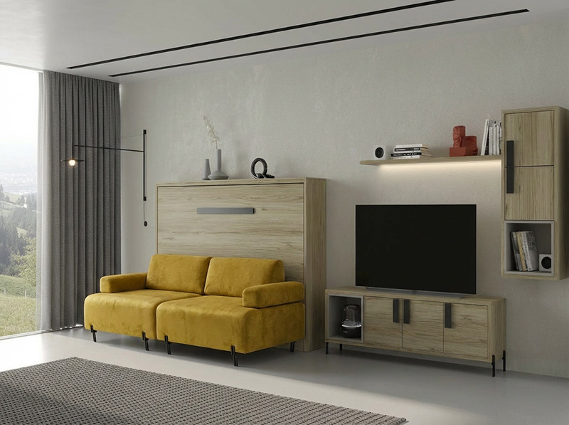 MI CAMA ABATIBLE LES PRESENTA ESTE PRÁCTICO MUEBLE ABATIBLE CON SOFÁ CON EL QUE PODRÁ DISPONER DE UNA ZONA EXTRA DESPEJADA EN LA HABITACIÓN.