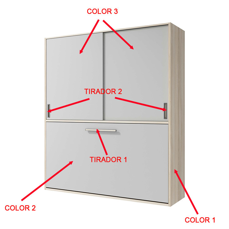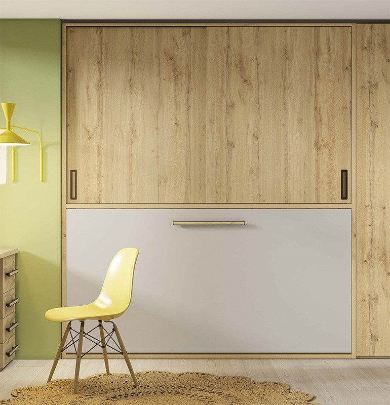 Cama Abatible en medidas individuales y matrimoniales con armario de puertas correderas Ref CAZ22000