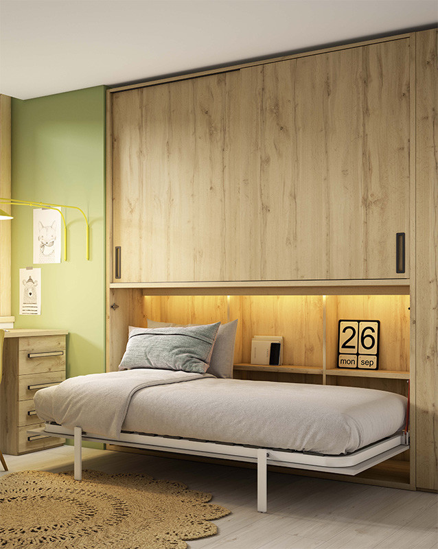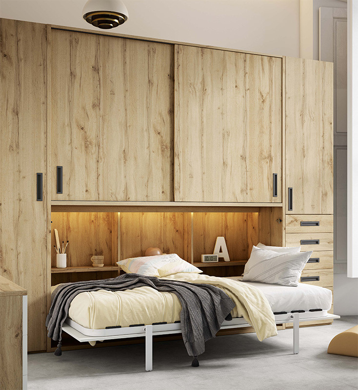 Cama Abatible en medidas individuales y matrimoniales con armario de puertas correderas