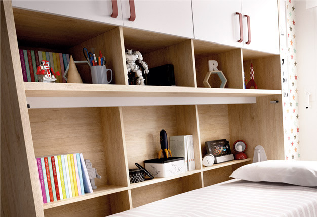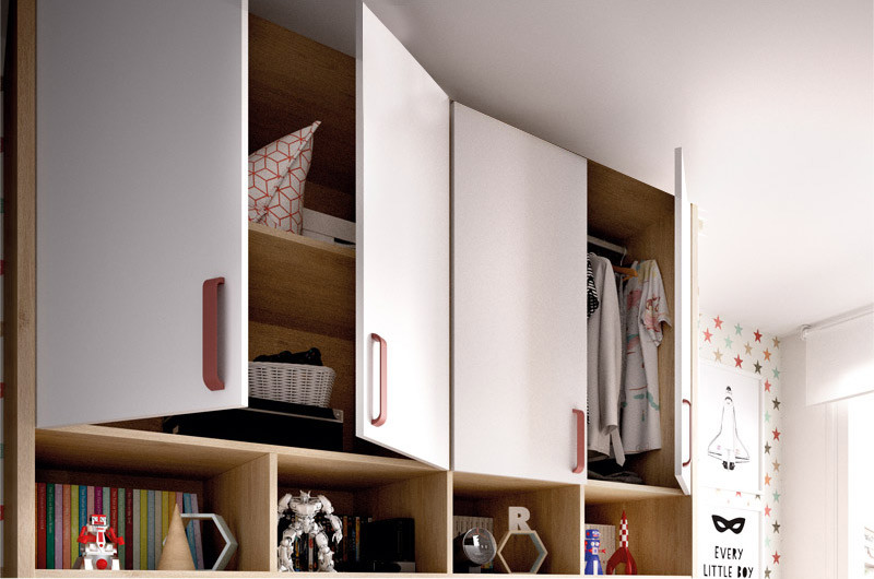 Esta cama es ideal para habitaciones de pequeñas dimensiones ya que al estar cerrada sus reducidas dimensiones permiten una zona abierta que se puede usar para el juego de los mas pequeños o el trabajo de los mayores. Su carta de colores permiten una fácil intregración con el resto del mobiliario de la estancia.