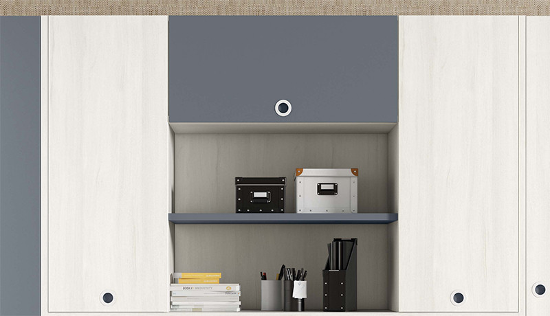 DISPONE DE ESCRITORIO ABATIBLE SINCRONIZADO CON LA APERTURA QUE LE DA UNA FUNCIONALIDAD EXTRA A LA CAMA. Esta cama es ideal para habitaciones de pequeñas dimensiones ya que al estar cerrada sus reducidas dimensiones permiten una zona abierta que se puede usar para el juego de los mas pequeños o el trabajo de los mayores. Su carta de colores permiten una fácil intregración con el resto del mobiliario de la estancia.