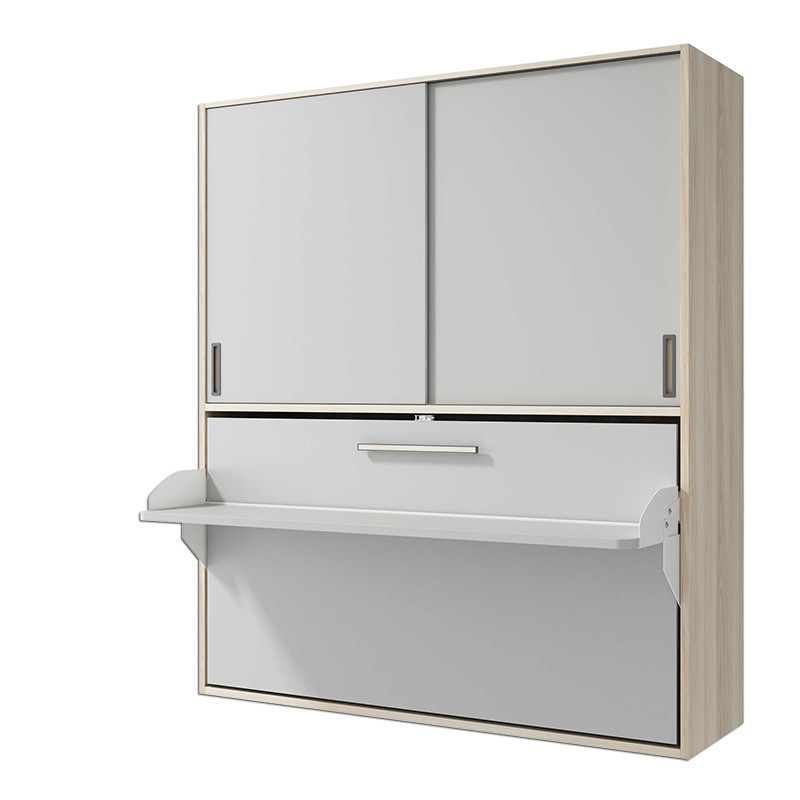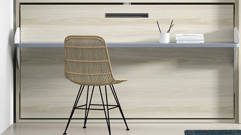 DISPONE DE ESCRITORIO ABATIBLE SINCRONIZADO CON LA APERTURA QUE LE DA UNA FUNCIONALIDAD EXTRA A LA CAMA. Esta cama es ideal para habitaciones de pequeñas dimensiones ya que al estar cerrada sus reducidas dimensiones permiten una zona abierta que se puede usar para el juego de los mas pequeños o el trabajo de los mayores. Su carta de colores permiten una fácil intregración con el resto del mobiliario de la estancia.