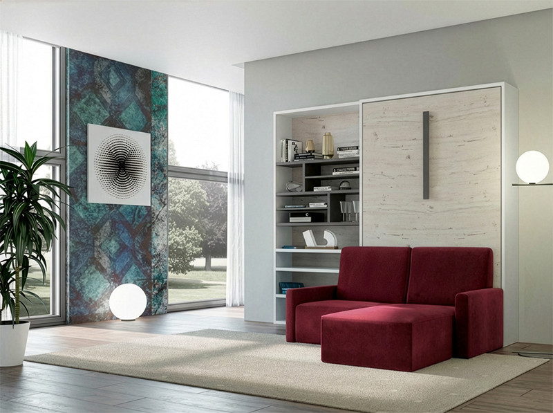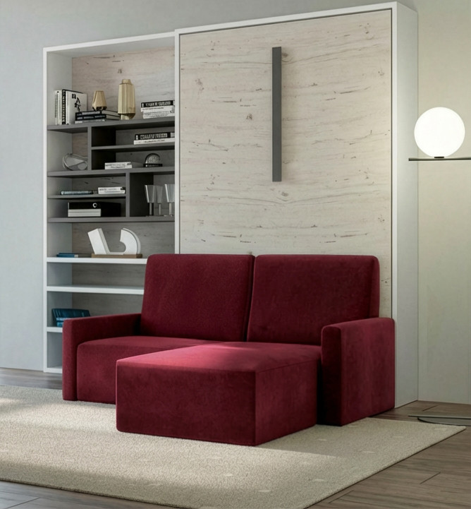 MI CAMA ABATIBLE LES PRESENTA ESTE PRÁCTICO MUEBLE ABATIBLE CON SOFÁ CHAISELONGUE CON EL QUE PODRÁ DISPONER DE UNA ZONA EXTRA DESPEJADA EN LA HABITACIÓN.