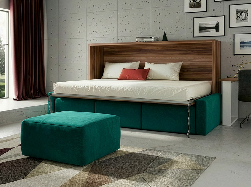 La cama se abre HORIZONTALMENTE, siendo una opción ideal para las habitaciones de reducido tamaño. El hueco interior permite el uso de COLCHONES CON UN MÁXIMO DE 20 CM DE ALTURA.
